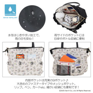 本体同色のリラックマの刺繍がさりげなく、裏地はリラックマたちの総柄となっていてバッグを開けるとテンションMAX!