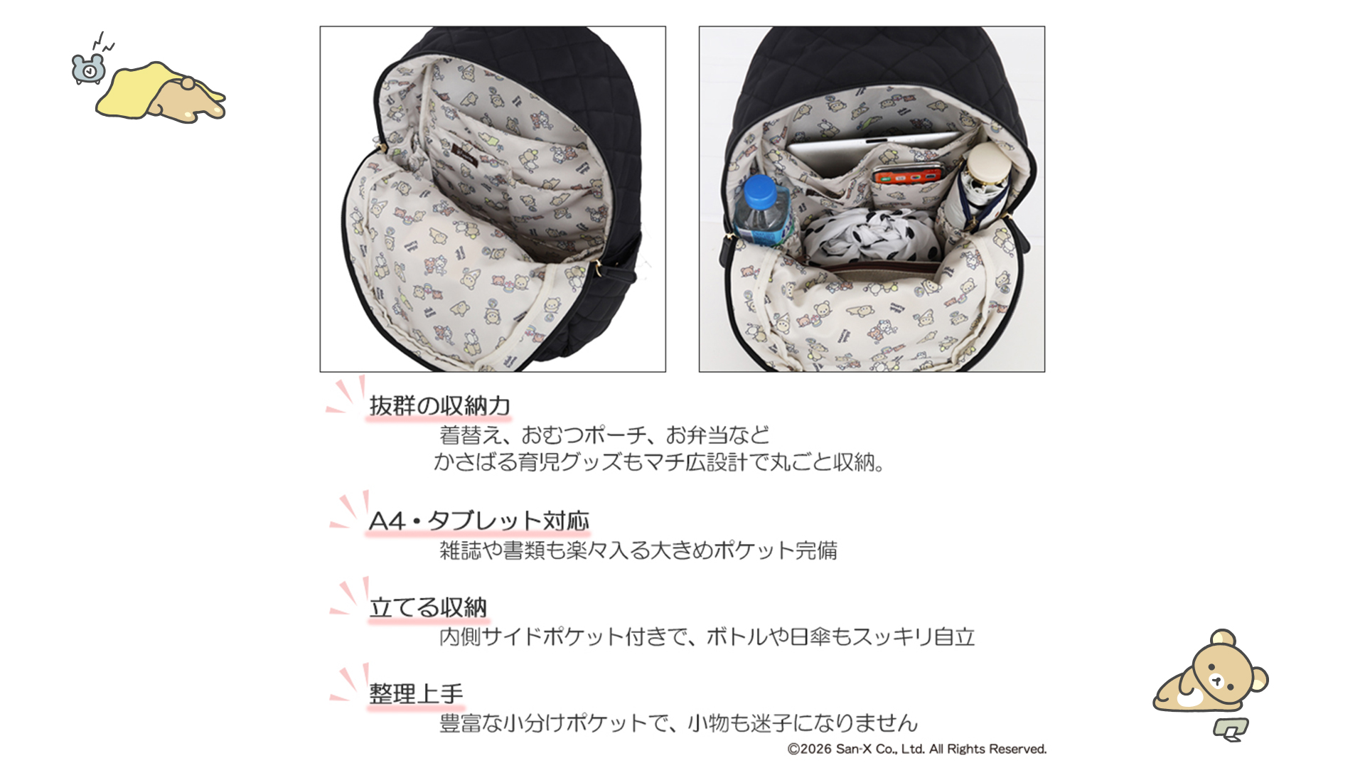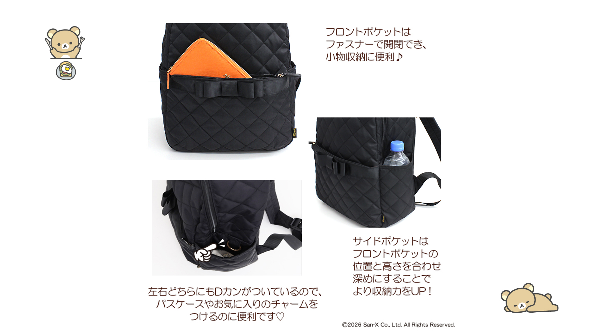 Fuente(フェンテ)の大人可愛いポイントリボン付きリュックにリラックマVerが新登場!