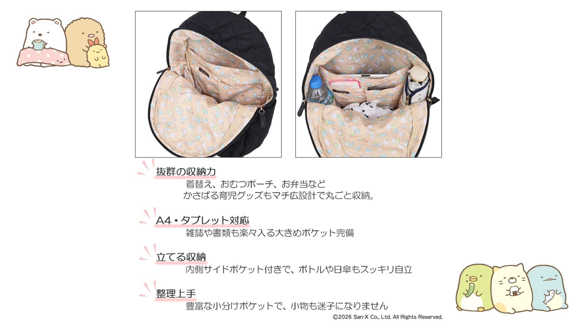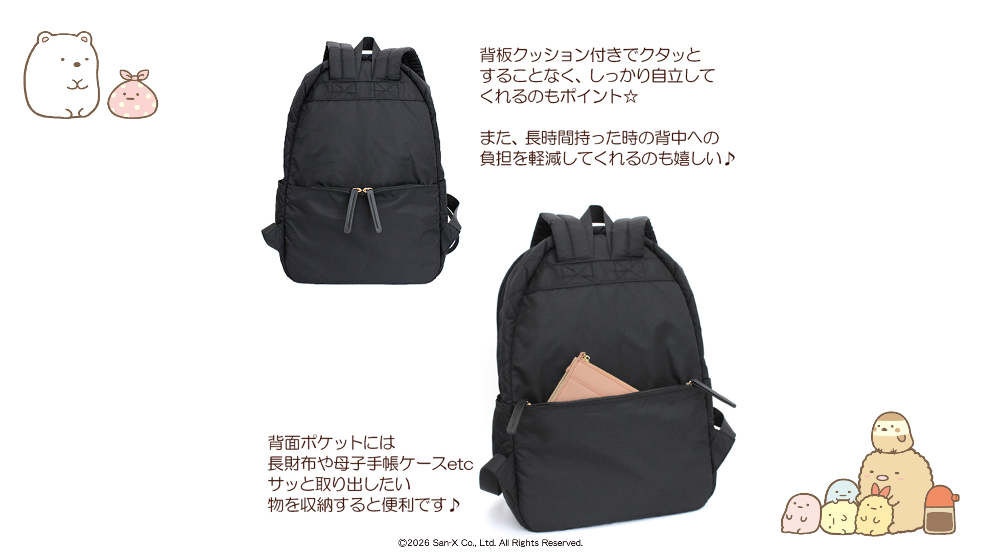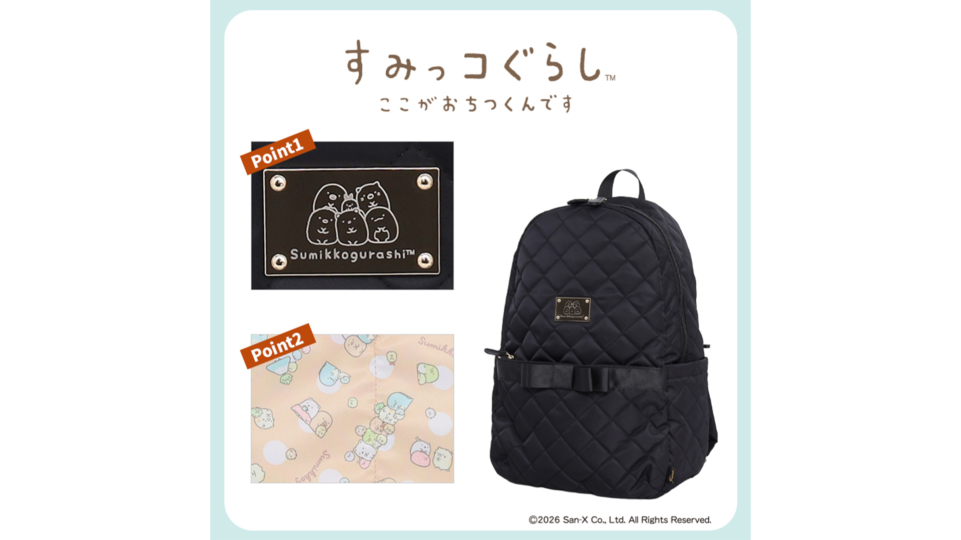 Fuente(フェンテ)の大人可愛いポイントリボン付きリュックにすみっコぐらしVerが新登場!